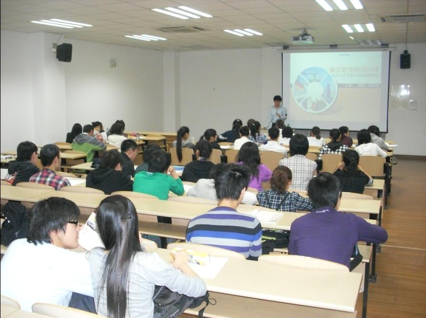 为促进校际交流,拓宽学生知识面,给同学以学习指导,10月17日晚六点半,365完美体育特邀请同济大学德语老师刘树坤来365完美体育进行德语口译专业指导。刘树坤老师以其幽默的谈吐,渊博的知识获得现场学生的一片好评。