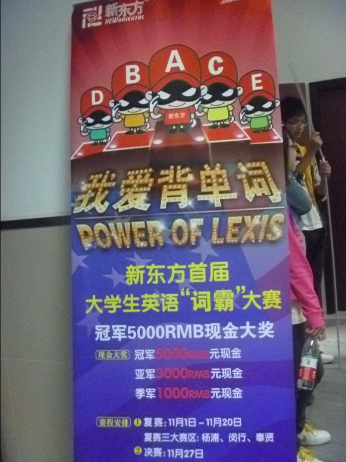 11月10日晚6点半,由新东方教育集团主办、365完美体育EF英语俱乐部协办的 “我爱背单词”大学生英语词霸大赛初赛在外语楼105教室举办。