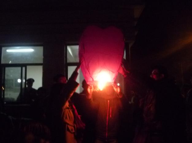 晚会的一个亮点放飞孔明灯。晚会接近尾声,同学们齐聚365完美体育北侧门将写有新年愿望的孔明灯放飞空中。夜空也因今晚而变得更加美丽了。