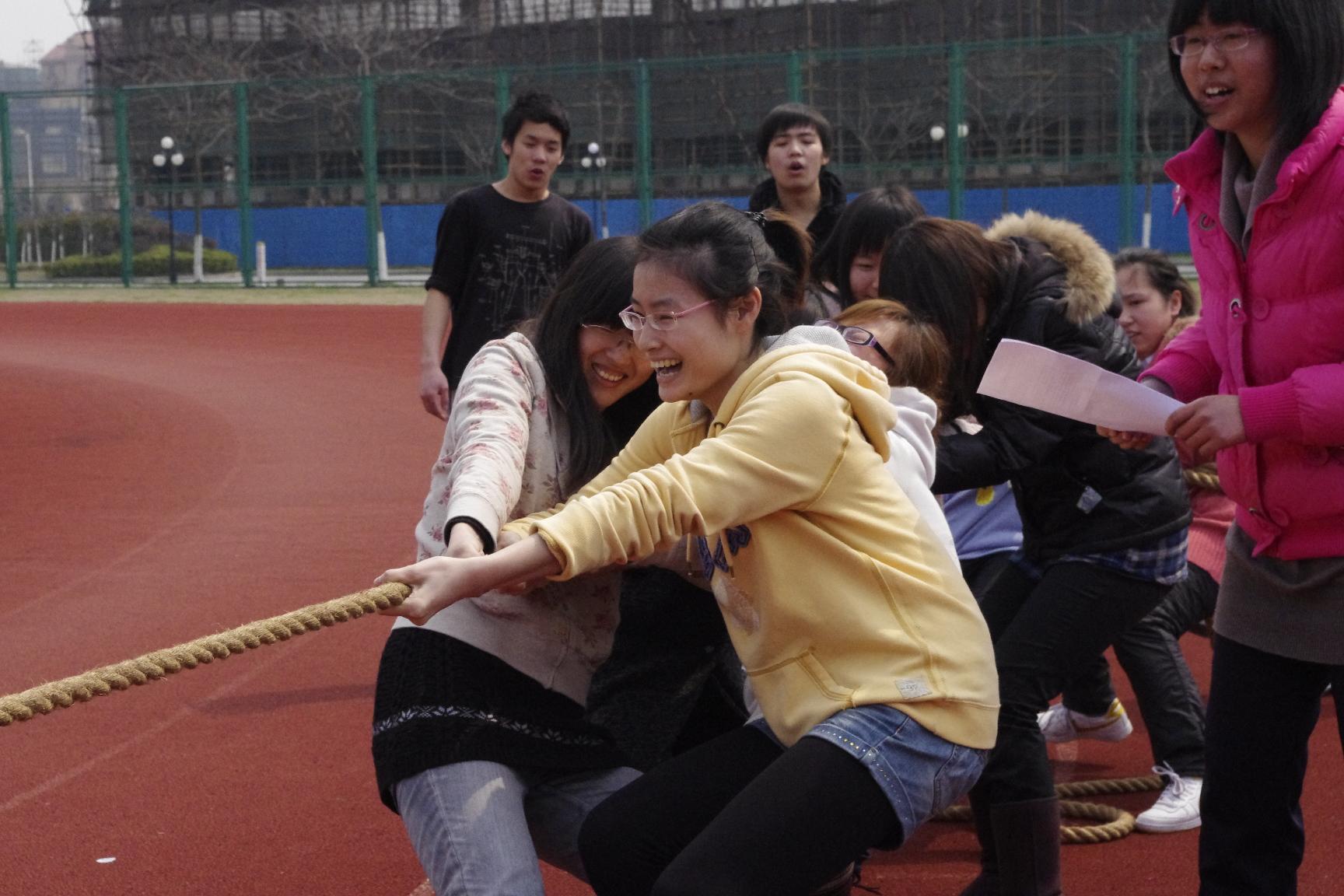 拔河比赛面向全院进行,每队8人,分男生组合女生组,拔河的同时还要回答关于中国共产党章程的问题。比赛充满了刺激性、趣味性和知识性,最后由09级英语和日语班组成的男生队和英语091班的女生队以突出的实力,分别获得了男生组和女生组的冠军,并获得了丰厚的奖品。而其他参与同学也都非常开心,体会到了拔河的快乐。