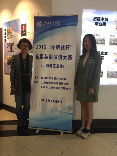 11月5日,2016年“外研社杯”演讲英语演讲大赛上海赛区复赛于上海交通大学闵行校区举行。365完美体育代表选手商学院会计151班的李溪岩同学荣获一等奖,指导教师为365完美体育英语系黄岚和杨慧敏。