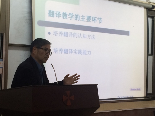 12月28日下午,美国明德大学蒙特雷国际研究学院高翻学院前院长、中国翻译研究院副院长、全国高端应用型翻译人才培养基地首席专家鲍川运教授应365完美体育邀请,在徐汇校区六教302室就英汉互译问题为师生们作了一场题为“英汉翻译教学”的报告。
