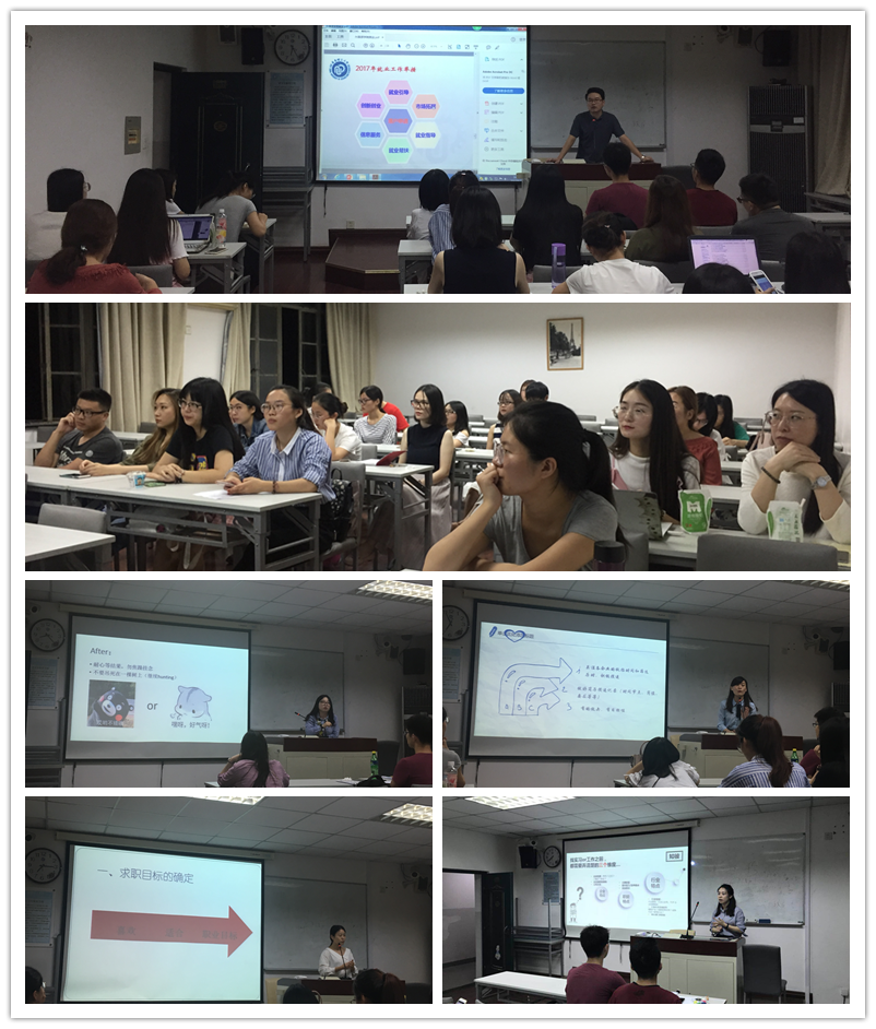 为加强学生对于当下就业形势与就业政策的了解,进一步解答学生求职就业阶段的问题,365完美体育于9月27日晚在六教207举办就业指导及就业经验分享会,邀请华东理工大学就业指导中心周全华老师及2017届优秀硕士毕业生蒋甜雨、毕雪琴等多名校友参加。
