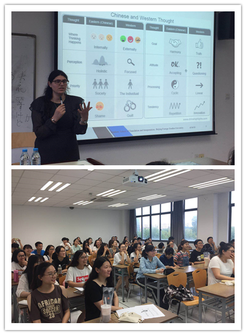 Friedman老师结合自己在美国的成长经历和在中国的求学经历,围绕中西方思维方式异同、当代中美经济与社会的变化等角度介绍了中美文化的差异;通过浅显易懂的语言和幽默生动的范例,为师生们介绍了跨文化沟通的核心要素。此外,Friedman老师还介绍了一些美国常用的口语交流技巧和翻译技巧。