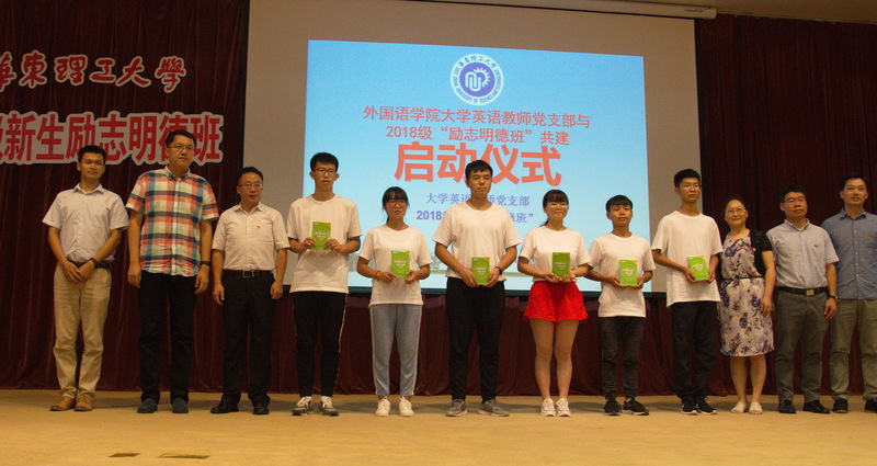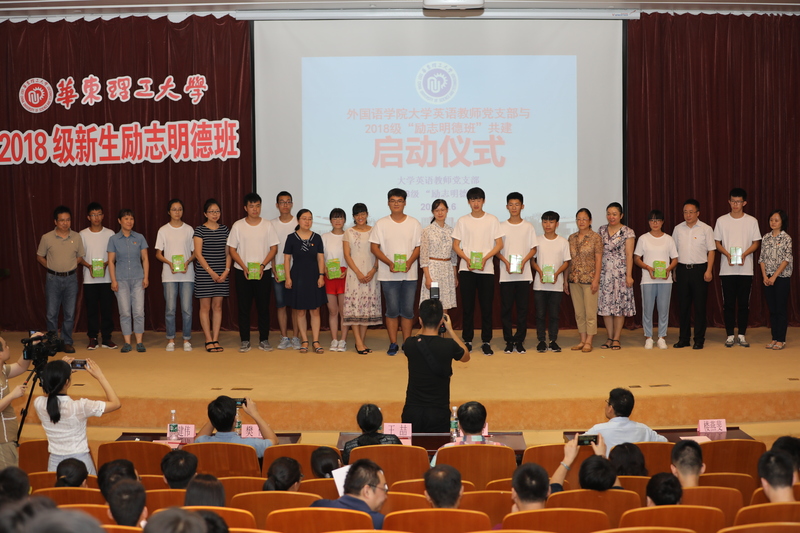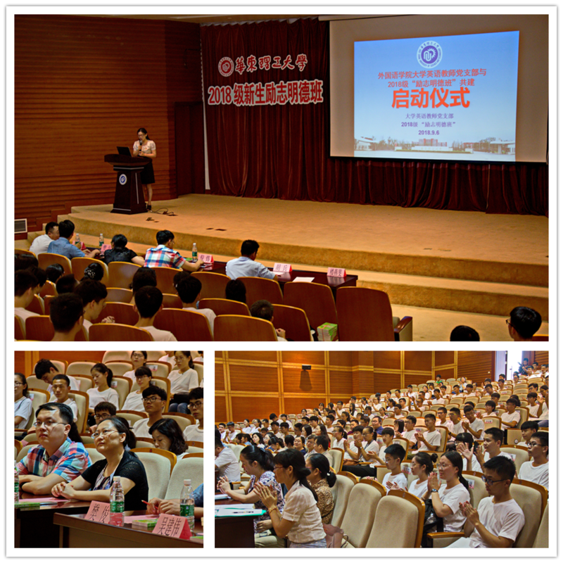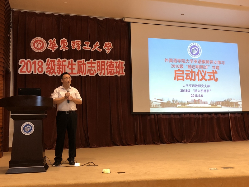 9月6日下午,365完美体育大学英语教师党支部与2018级新生“励志明德班”共建活动启动仪式在奉贤校区敬贤堂举行。学工部部长、校团委书记倪炜,学工部副部长胡兵,外语学院党总支书记王喆、副书记樊俊、副院长吴建伟、大学英语教师党支部16名教师党员、教师志愿者和147名“励志明德班”学生一起参加了启动仪式。活动由大学英语教师党支部组织委员楼燕斐主持。