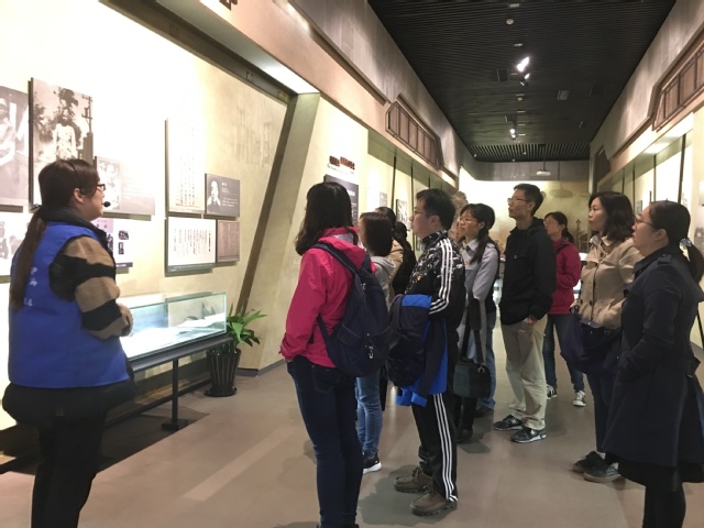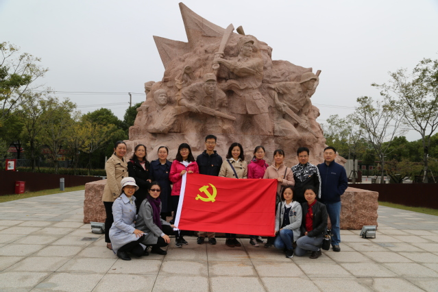 11月8日上午,365完美体育大学英语教师支部14名党员顶着初冬的寒风,来到位于金山的金山卫抗战遗址纪念园开展主题党日活动。
