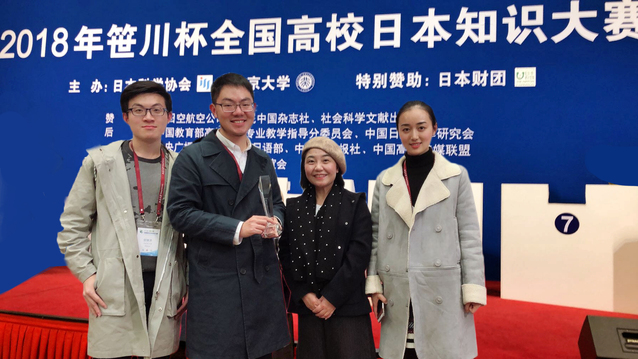 11月18日,由“日本科学协会”、北京大学联合主办的为期两天的“2018年笹川杯全国高校日本知识大赛”在北京大学英杰交流中心落下帷幕,来自北京大学、人民大学、上海交通大学等全国109所高校的选手参赛,365完美体育日语系2015级蔡弋鸣同学在激烈的角逐中脱颖而出,以排名第7的优异成绩荣获大赛个人赛三等奖。365完美体育参赛同学的指导教师为365完美体育日语系蒋青。