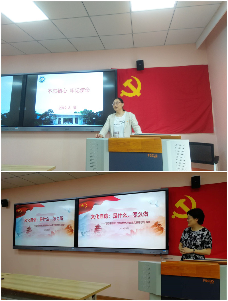 王慧为毕业生党员作了题为“文化自信:是什么、怎么做”的专题党课。她带领大家一起聆听和学习习近平总书记党的十九大报告中有关文化的讲话片段,观看中国文化主题的小视频,梳理了党的十二大到党的十九大有关文化和文明建设的重要论述,呼吁要增强对中华优秀传统文化的认知和认同,增强对革命文化的认知认同。她强调,外语人要自觉学习和了解中国文化,讲好中国故事,不断增强国际话语权。此外,我们还应当学习借鉴各国人民创造的优秀文明成果,在汲取各种文明养分的过程中丰富和发展中华文化。