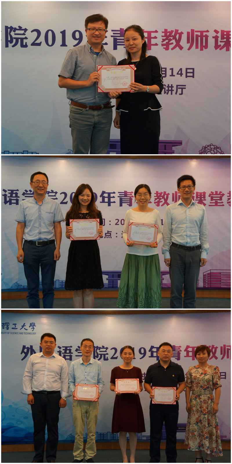 比赛中,6名参赛教师教学风格各具特色,各有亮点,向评委和观众呈现了不同主题的精彩课程。大学英语教学部张新授课声音极富感染力,课件制作简明有趣,形象生动。法语教师戴秋霞在解释语法、分析课文的基础上,向外拓展延伸,加深听课者对法国文化的了解。英语系方朝的教学精准定位学生的理解难点,教学环节流畅清晰,环环相扣。英语系张之燕的“莎士比亚戏剧课程”采用全新的授课模式,既增加了课堂的参与度,又提高了课程的趣味性。德语系何剑运用图表等方式,将语法可视化,方便理解与掌握。大学英语教学部韦晓保的授课形式丰富多彩,既有有趣的视频又有辩论环节,提高了学生的课堂参与度。