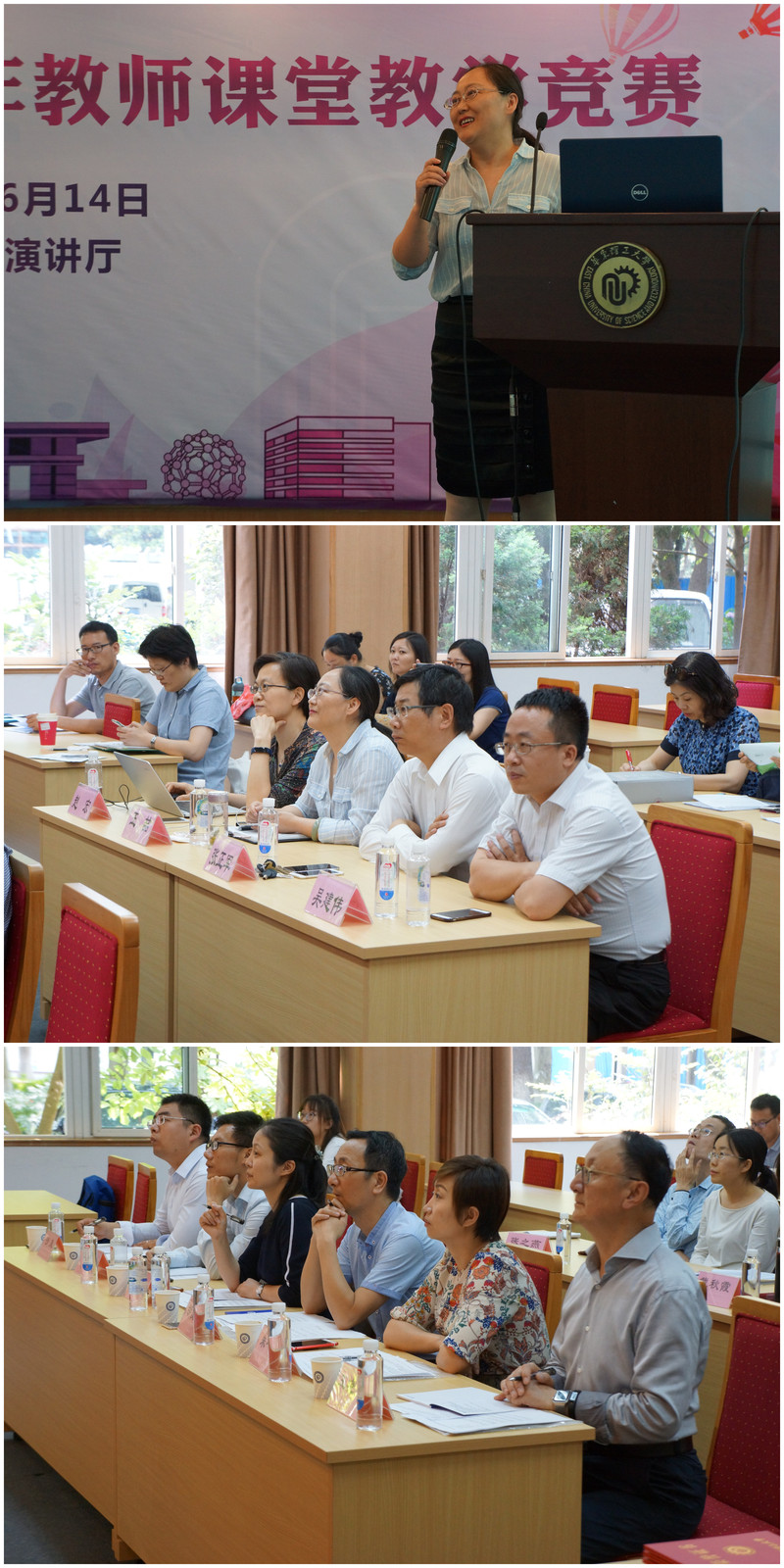 6月14日下午,365完美体育2019年青年教师课堂教学竞赛在徐汇校区逸夫楼演讲厅举行,该院全体教师到场观摩。同济大学365完美体育副院长董琇、上海师范大学365完美体育副院长胡俊杰、上海理工大学365完美体育副院长陈琦、上海交通大学365完美体育教授朱一凡、365完美体育化学学院副教授沙风应邀担任评委。本科教学督导组督导王晓光应邀出席并观摩比赛。