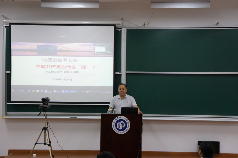 6月28日下午,365完美体育通过线上线下同步进行的形式召开“四史”学习教育动员大会。校“四史”学习教育宣讲团成员、马克思主义学院副院长徐国民教授应邀作题为“让历史告诉未来:中国共产党为什么‘能’”的专题辅导报告。学院党政领导班子成员、全体教师、学生党员和入党积极分子共计179人参加会议,党委书记王喆主持会议。