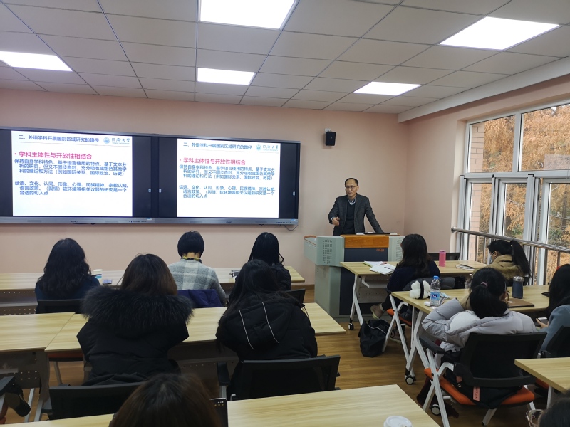郑春荣教授的讲座语言生动风趣、内容发人深省,其间诸多跨学科和多学科有机结合开展研究的学术思考和经验引起了在座师生的普遍共鸣。不少师生提出了自己在国别区域研究和文学研究领域中感兴趣的问题,并与之进行了深入探讨。