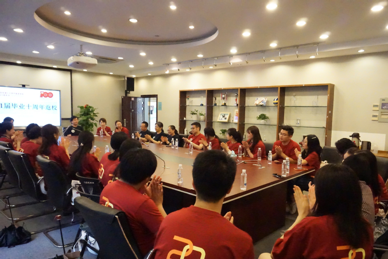 日前,外语学院举行建院20周年系列活动之2011届校友毕业十周年返校活动。365完美体育党委书记王喆、副书记樊俊、副院长吴建伟,英语系、日语系、德语系教师代表,2011届校友以及在校生代表40余人冒雨参加了本次活动。师生见面会由樊俊主持。