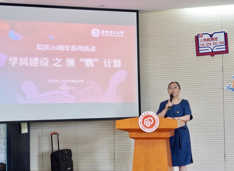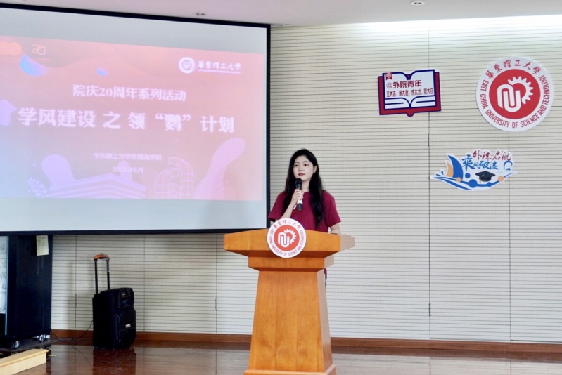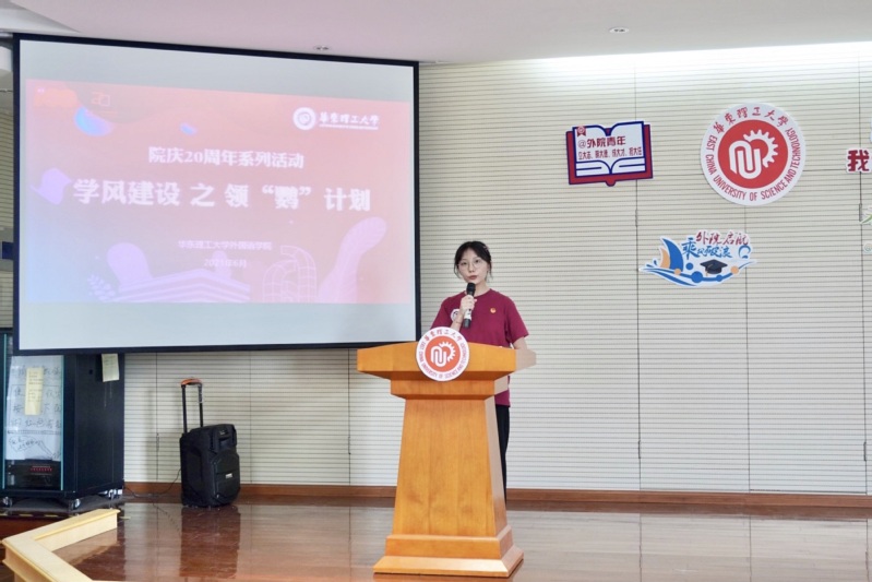 近日,外语学院建院20周年系列活动之“学风建设——领‘鹦’计划汇报会”在奉贤校区举行。外语学院党委书记王喆,英语系主任张之燕,学院团委书记、2020级辅导员孙阔出席本次活动,学院团学骨干、领“鹦”计划36名学生代表参加活动。活动由英语204班李玮宜主持。