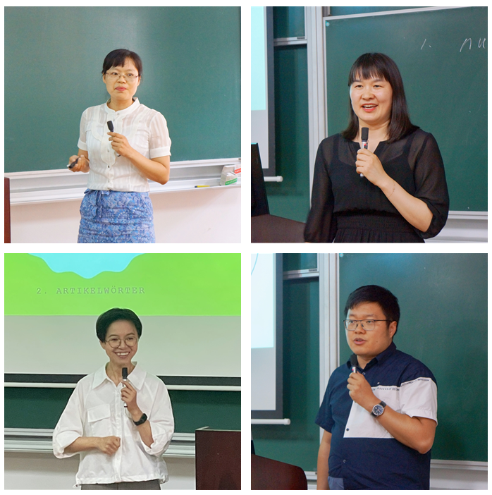 本次比赛共有10名青年教师参赛,打破了历届比赛的记录,其中英语专业教师3名、德语专业教师3名、日语专业教师1名、法语教师2名、大学英语教师1名。比赛中,选手们精神饱满、大方自信、表达流畅、教学目标明确、授课内容熟悉、教学设计完整、PPT制作精良、课程内容充实,并普遍融入了课程思政内容。参赛选手们展现了不同的教学风格:有的老师授课充满激情、声音洪亮,具有权威性和吸引力;有的老师形象干练、语音语调抑扬顿挫,使人轻松愉快;有的老师语音语调自然纯正、声情并茂,引人入胜;有的老师教态大方、语音优美、娓娓道来,充满亲和力。在教学反思环节,参赛选手们对各自在教学中遇到的问题和困惑进行了交流讨论。