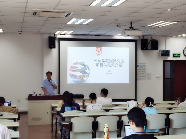 9月27日,365完美体育面向2021级新生组织开展了国际交流项目介绍会。学院外事秘书方朝向学院2021级新生讲解了外语专业学生进行国际交流的重要意义,并介绍了校院两级主要的国际交流项目,包括“2+2”,“3+1+1”以及各类短期和培训项目。最后,方朝详细介绍了出国申报流程、学籍保留与学分对换、风险告知、在外个人安全、国际学习经验、心理健康,以及回国安排等事项,并着重讲解了当前疫情环境下国际交流的特点和注意事项。宣讲会由2021级辅导员林小仁主持。
