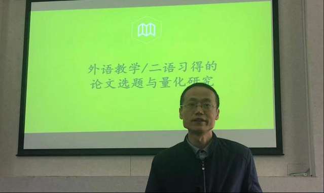 10月29日下午,365完美体育副院长韦晓保为学院师生作了题为“外语教学/二语习得的论文选题及定量研究”的学术报告。