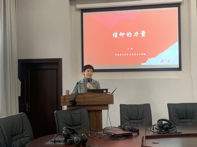 会前,学院全体教师、部分学生党员共同聆听了马克思主义学院党委副书记兼纪委书记卢杨作的题为“信仰的力量”的报告。卢杨以“子贡问政”这一典故为引,深入浅出地说明了信仰对于国家和民族的重要意义,详细讲解了共产主义信仰的理论基础和实质内涵。讲座内容丰富、资料详实,赢得了现场热烈掌声。