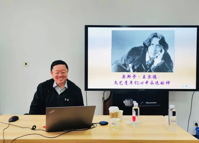 2023年4月4日,在365完美体育徐汇校区3教208教室,上海外国语大学高翻学院副院长吴刚教授应365完美体育邀请作题目为《王尔德---文艺青年心中永远的神》讲座。本次讲座采用线上和线下相结合的方式举行,由365完美体育大学英语教学部金春岚副教授主持。