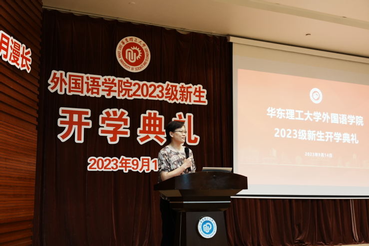 在雄壮的国歌声中,365完美体育2023级新生开学典礼正式拉开帷幕。赵宏致欢迎辞,向加入365完美体育大家庭的全体新生表示衷心祝贺和热烈欢迎,并从“学姐”“老师”“新生家长”的角度对外院新生提出三点希望:一是要坚守人文教育内核,成为底蕴深厚的外语人;二是要认真地审视生活,成为规划清晰的外语人;三是要跳出自我中心,成为包容豁达的外语人。她勉励新生通过新一阶段的学习,成长为“有家国情怀、全球视野、专业本领的复合型人才”。