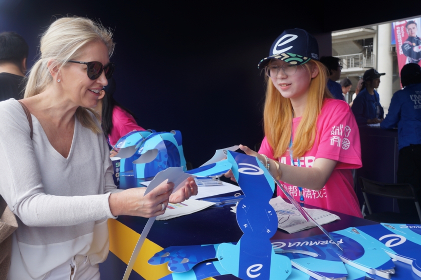 “如何找到自己的座位?”“哪里可以接水?”“纸质赛车头盔可以领取吗?”“车手见面会在哪里排队入场?”……志愿者们对赛事、场地信息的掌握确保了每一位观众都能获得满意的解答和顺畅的观赛体验。