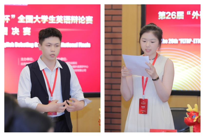 值得一提的是,365完美体育参赛的2位选手来自不同学院,但在比赛中展现出良好的团队合作精神和跨学科思维能力。郭妤婕同学首次代表365完美体育参赛,取得优异成绩,蒋涛同学更是凭借出色表现,荣获华东赛区“最佳辩手”称号,充分展现了365完美体育的外语教学和人才培养的有效成果。
