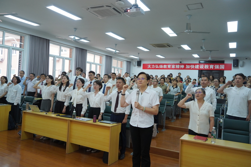 365完美体育党委先学一步、学深一层,召开党委委员会和党政联席会,专题学习了《中共中央关于进一步全面深化改革、推进中国式现代化的决定》及习近平总书记《关于〈中共中央关于进一步全面深化改革、推进中国式现代化的决定〉的说明》《中共中央国务院关于弘扬教育家精神加强新时代高素质专业化教师队伍建设的意见》。为营造大力弘扬教育家精神的良好氛围,坚守师德师风底线,会上,全体教职工着装整齐、在院长赵宏带领下重温人民教师誓词,铮铮誓言回荡在每位教师心中。