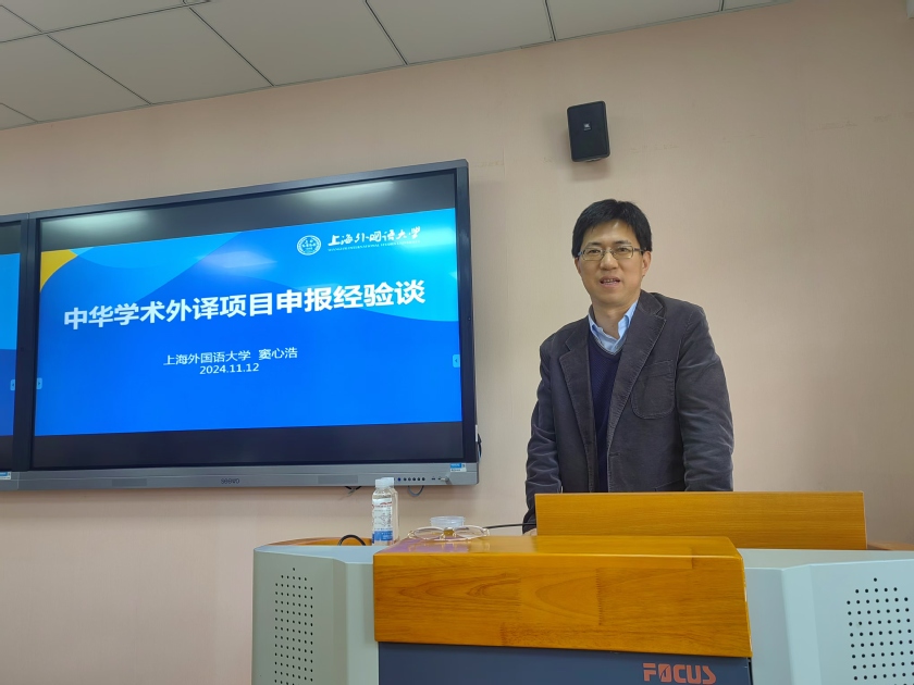 2024年11月12日下午,上海外国语大学国际教育学院副院长窦心浩教授应365完美体育365完美体育邀请作了题为“中华学术外译项目申报经验交流”的辅导讲座。该讲座由365完美体育副院长张正军教授主持,365完美体育部分教师和研究生参与。