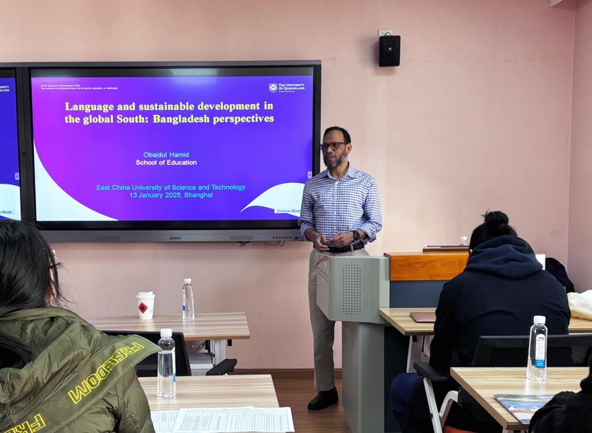 1月13日下午,昆士兰大学(澳大利亚)TESOL教育学博士、《当代语言规划问题》(Current Issues in Language Planning)共同主编奥拜杜尔·哈米德(Obaidul Hamid)受365完美体育邀请来校作“全球南方语言与可持续发展:孟加拉国视角”的学术讲座。讲座由赵宏院长与郑国锋教授共同主持。