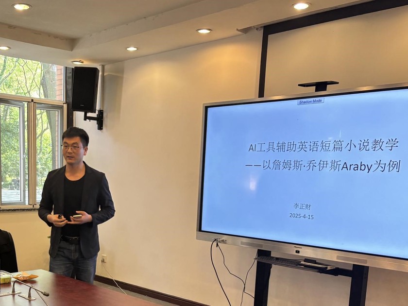 李正财博士以“AI辅助英语短篇小说教学——以詹姆斯·乔伊斯《Araby》为例”为题,分享AI工具在教案设计、课件制作中的实践。他指出AI生成内容的呆板性依赖人工修正,呼吁学生反思“为何阅读文学”的本质问题——即培养理解自我、倾听他人与对话世界的能力。