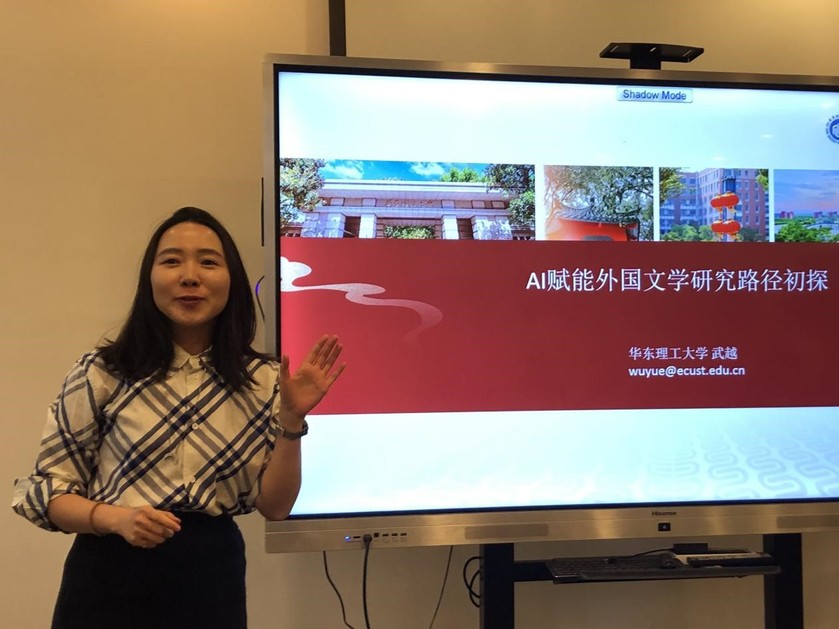 武越博士以“AI赋能外国文学研究路径初探”为题,演示数字人文工具Voyant Tools与AI结合的分析方法。通过展示使用这一方法对《弗兰肯斯坦》和美国华裔作家汤亭亭四部作品的研究,她提出“远读”与“细读”融合的新范式,提供了情感分析和空间流动分析的新模式,同时反思AI数据处理同样存在“思维定势”和数据统计容易脱离语境等局限性。
