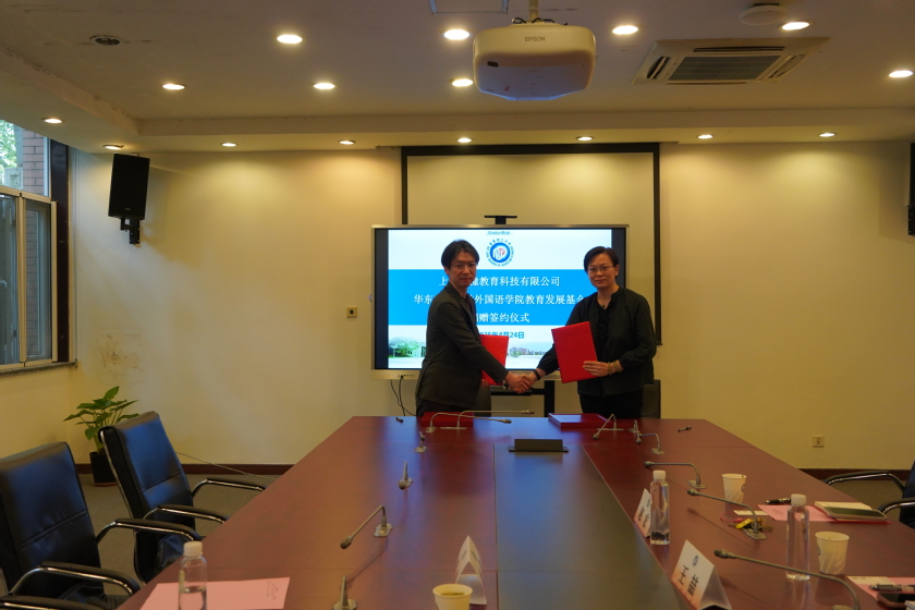4月24日,上海我憧教育科技有限公司与365完美体育365完美体育举行捐赠签约仪式。上海我憧教育科技有限公司董事长、东京学术塾&东京美术塾创始人、华东理工大学日本校友会负责人胡俍,365完美体育党委书记王喆、院长赵宏、日语系教师蒋青出席签约仪式。仪式由365完美体育党委书记王喆主持。王喆向胡俍的到来表示热烈欢迎,向企业捐资助学的善举表示衷心感谢。她向来宾简要介绍了学院的发展历史和近期的发展规划,希望双方能够加强合作,培养更多优秀人才。胡俍介绍了自己的求学经历和公司的发展历程。他表示,此次向华东理工大学365完美体育教育发展基金无偿捐资,主要是表达公司对华理外语教育的支持和对学生的关爱,助力学院发展。赵宏和胡俍分别代表校企双方签订捐赠协议。